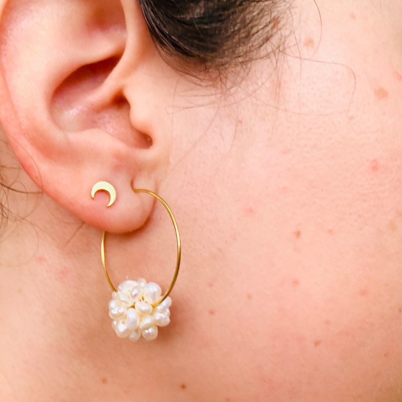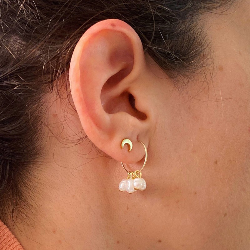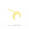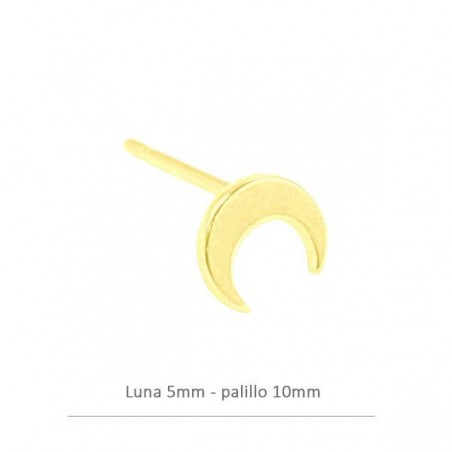 - Pendiente luna en plata baño oro. - Tamaño de 5.5 milímetros y palillo de 10 mm. - La bolsa contiene 2 unidades y 2 presiones.