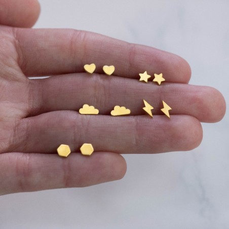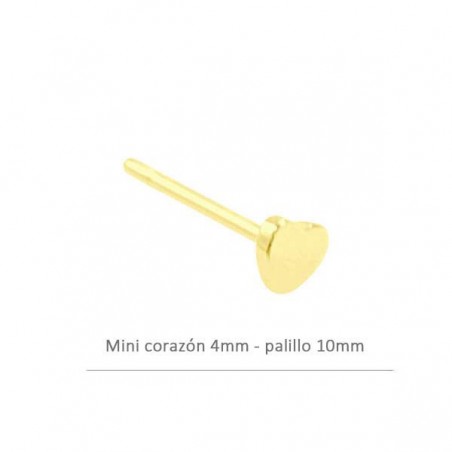 - Pendiente mini corazón en plata baño oro. - Tamaño de 4 milímetros y palillo de 10 mm. - La bolsa contiene 2 unidades y 2 presiones.