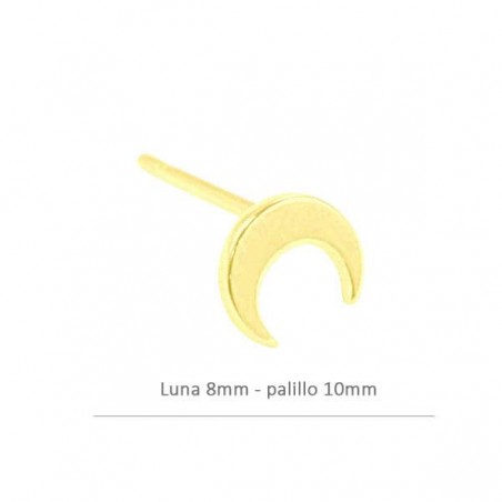 - Pendiente luna en plata baño oro. - Tamaño de 8.5 milímetros y palillo de 10 mm. - La bolsa contiene 2 unidades y 2 presiones.
