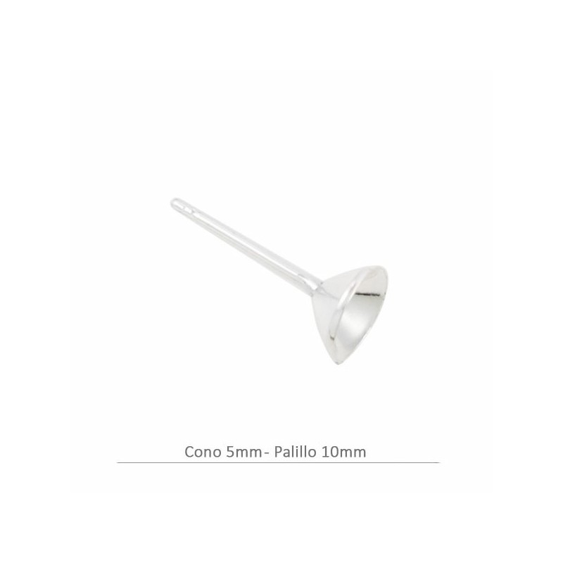 Pendientes de cono con presión, en plata de ley. La bolsa contiene 2 unidades. El tamaño del pendiente es de 15 mm. y el del cono es de 5 mm.