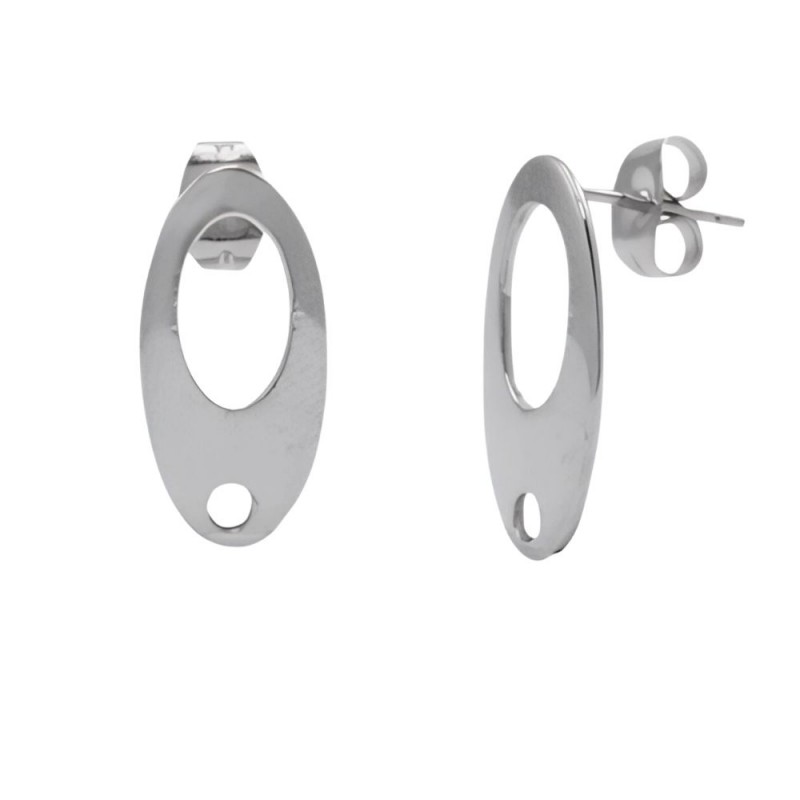 Fornitura de pendiente oval de 18,8 mm de largo y 9,5 mm de ancho con agujero de 1,5mm en acero inoxidable.