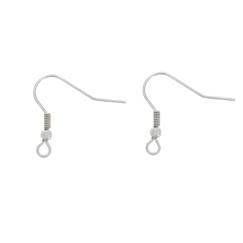 Fornitura de gancho de pendiente con anilla abierta y bola y muelle embellecedor de 21 mm de largo en acero inoxidable.