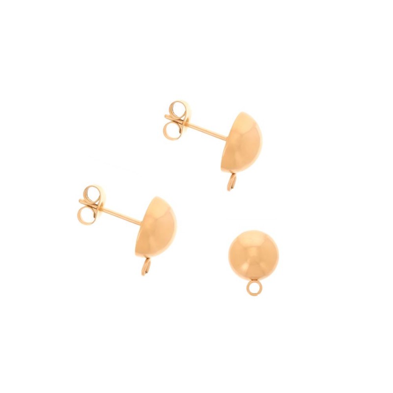 Fornitura de pendiente en forma de media bola de 7 mm con asa de 1,5 mm en acero inoxidable dorado.