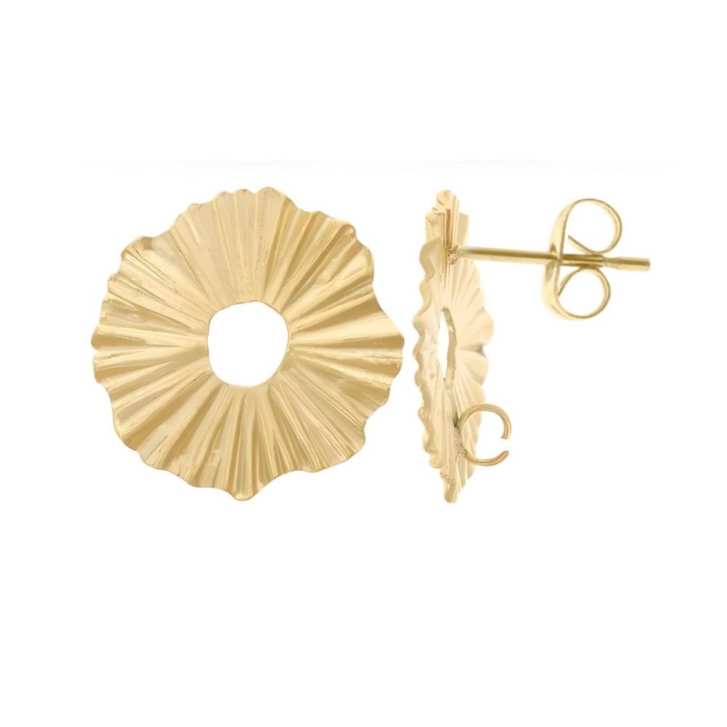 Fornitura pendiente margarita 17mm - agujero 3,5mm con asa abierta. Diámetro asa abierta 4mm. En acero inoxidable dorado.