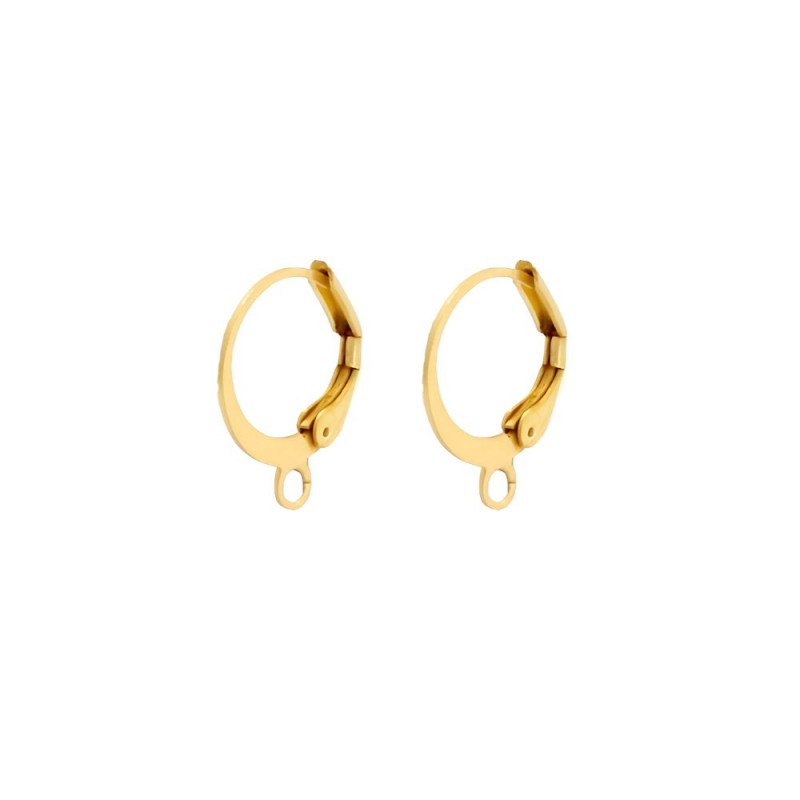 Pendiente criolla plana de 12mm con anilla de diámetro interior de 1,5mm y diámetro exterior de 3,6mm en acero inoxidable dorado.