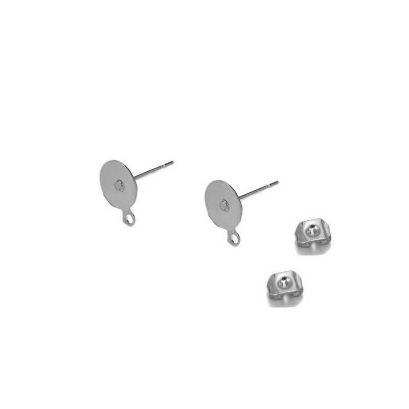 Fornitura de pendiente de palillo de base plana de 6 mm con asa de 2,6mm de diámetro exterior y agujero de 1mm para montaje en acero inoxidable incluye presiones.