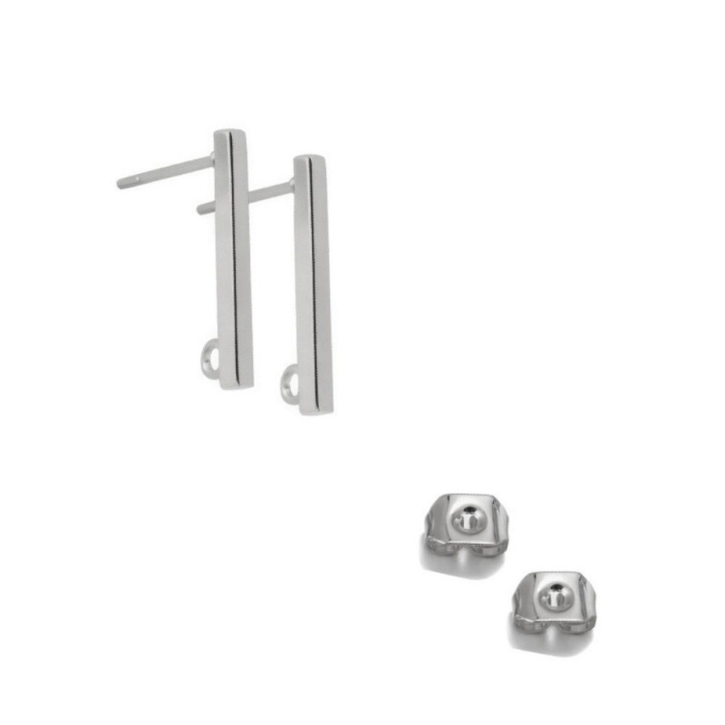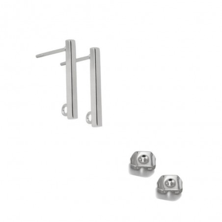 Fornitura de pendiente con palillo largo de 20 mm con anilla trasera escondida en acero inoxidable.