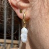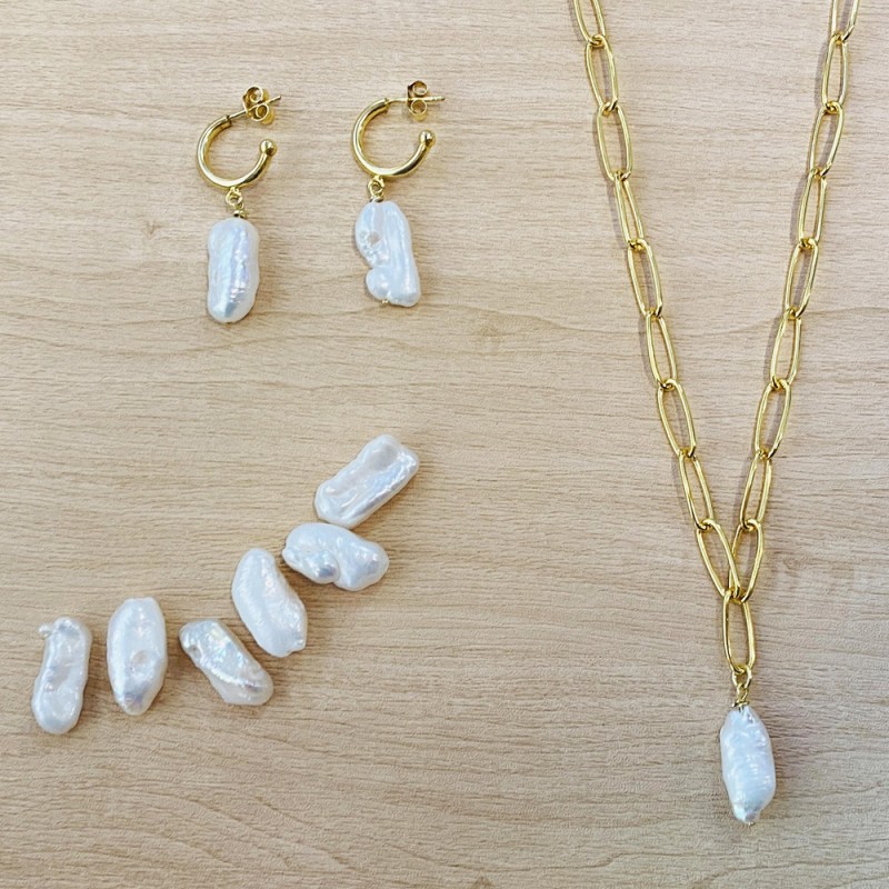 - Perlita alargada de rio o agua dulce irregular con agujero en el centro alargado.