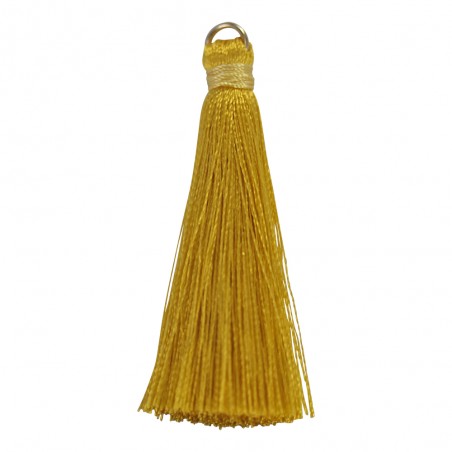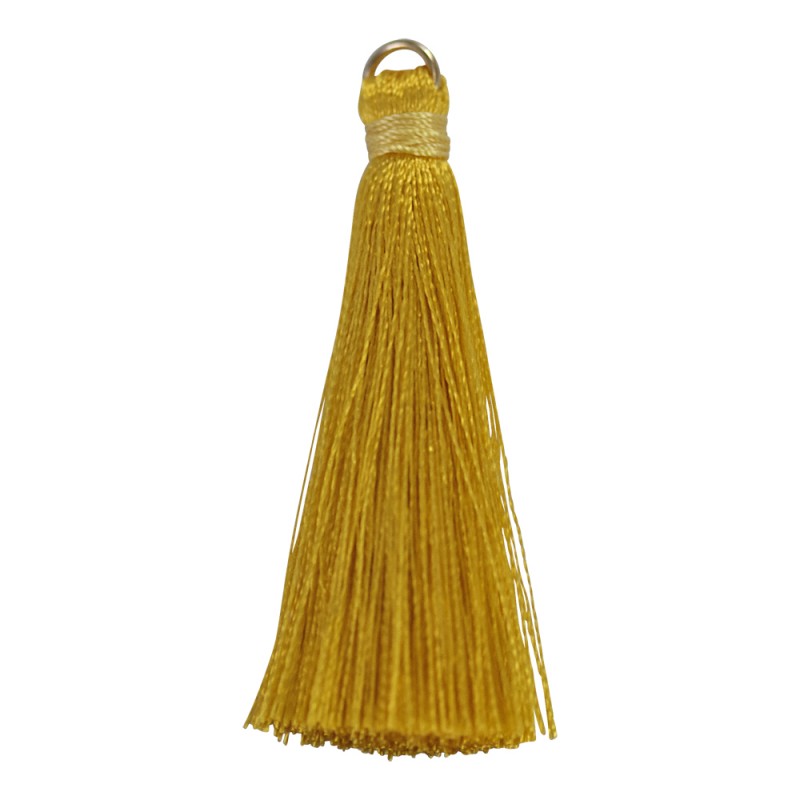 Borla con anilla, color mostaza. - El precio es por bolsa y la bolsa contiene 2 unidades - El tamaño es de 5 cm.