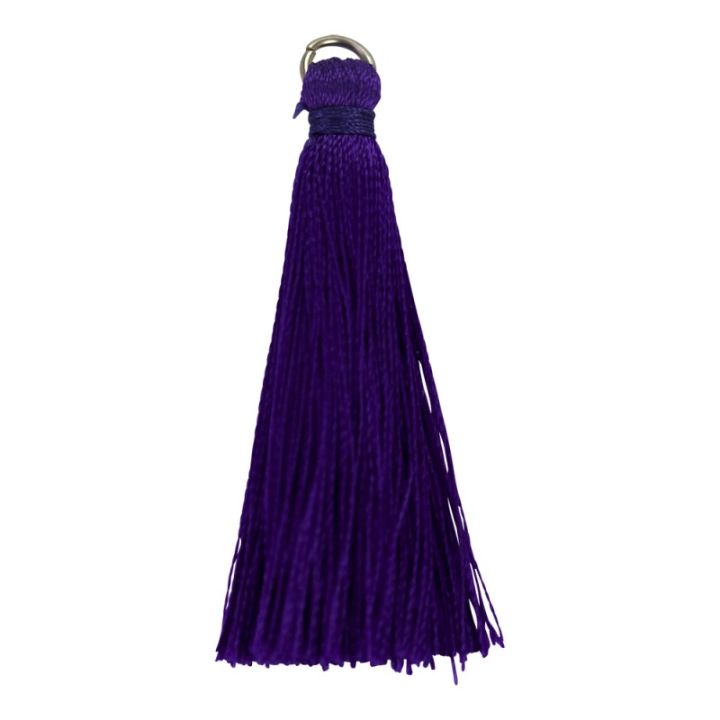 Borla con anilla, color morado. - El precio es por bolsa y la bolsa contiene 2 unidades - El tamaño es de 5 cm.
