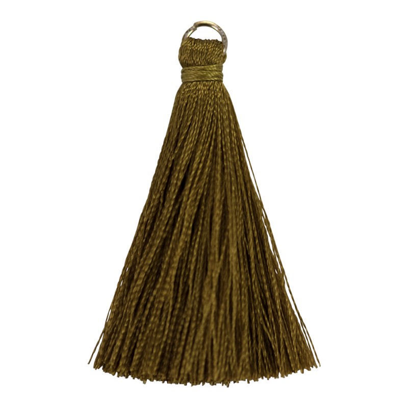Borla con anilla, color verde ocre. - El precio es por bolsa y la bolsa contiene 2 unidades - El tamaño es de 5 cm.