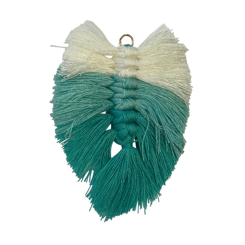 - Borla monstera en color verde degradado con anilla bañada en oro integrada en la borla.