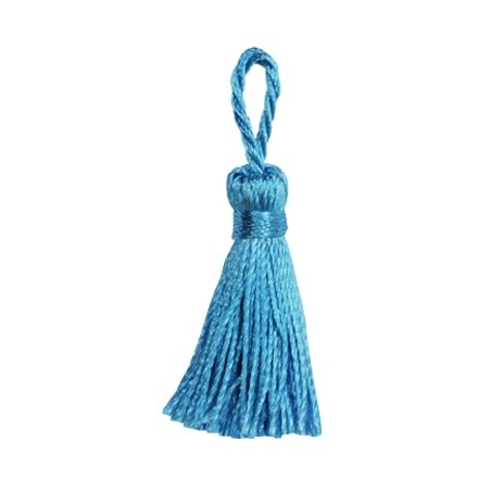 Pompón de raso en color turquesa. La bolsa contiene 1 unidad y el tamaño de la borla es de 3 mm.