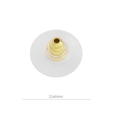 - Presión copa de silicona y latón en color dorado. - Tamaño de la copa 11 milímetros e interior de 6 milímetros. - La bolsa contiene 10 unidades y el precio es por bolsa. la copa es de 11 mm.
