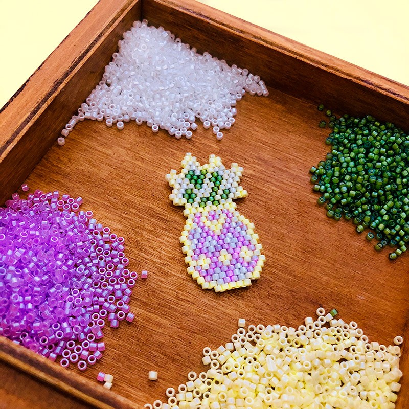Disfruta creando el broche piña con las cuentas delica de Miyuki. La técnica utilizada para hacer este colgante es el brick stitch.