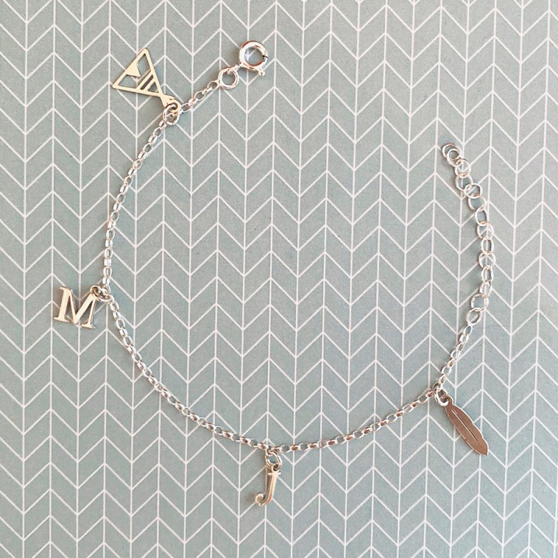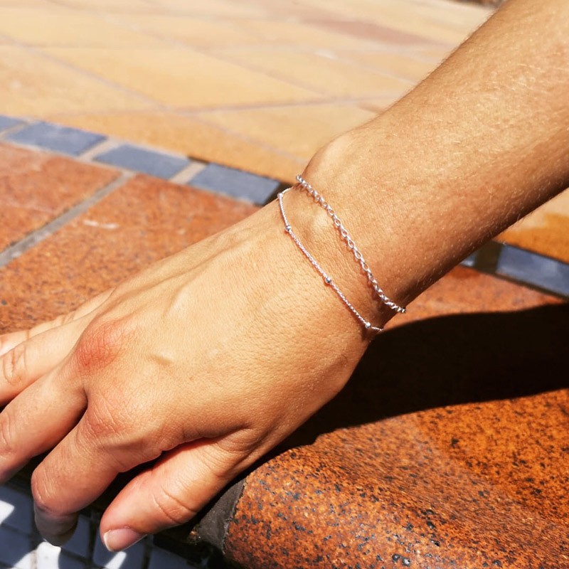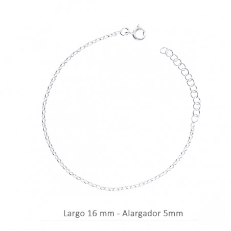 Cadena pulsera de rolo en plata de ley. El largo es de 16cm más 5cm de alargador