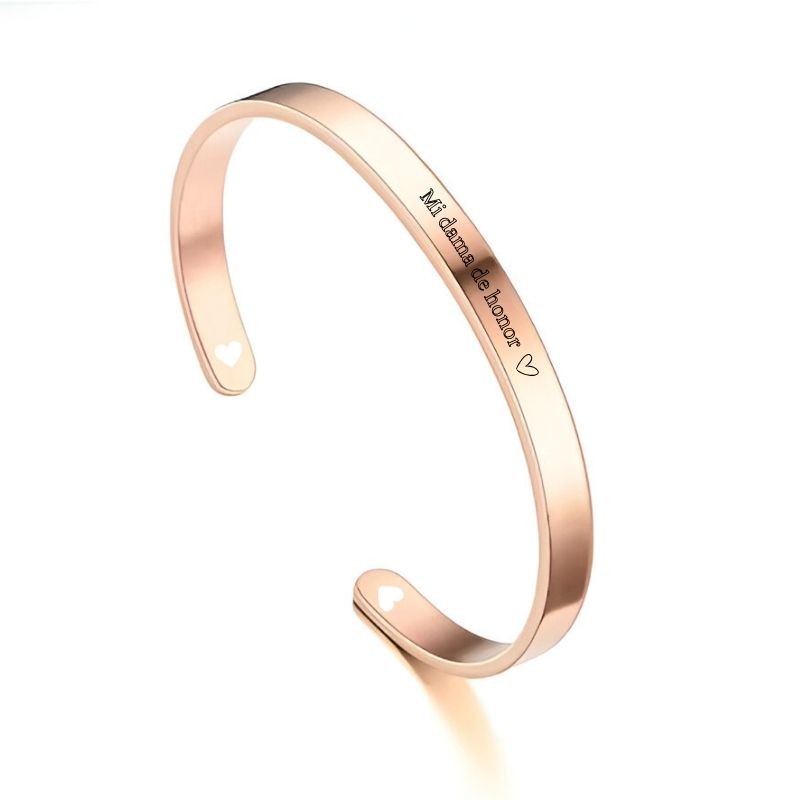 Pulsera 4 mm con corazones ajustable para grabar. Acero inoxidable oro rosa.