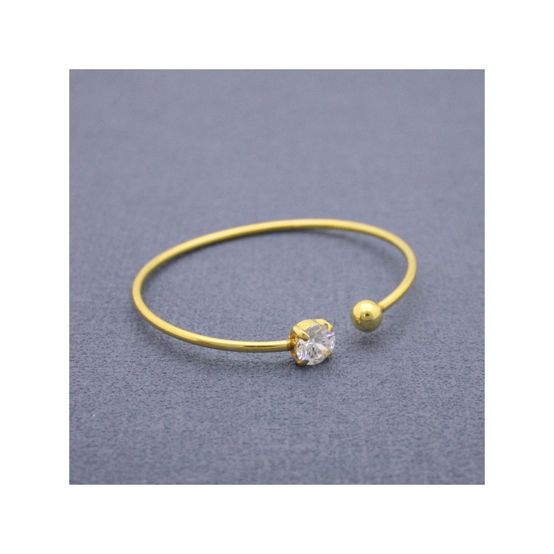 Pulsera en plata de ley 925 bañado en oro de 18k con garra de 8mm en uno de los lados especialmente diseñado para cristales de Swarovski redondos de 8 mm. En el otro lado tiene una bola de 4mm.