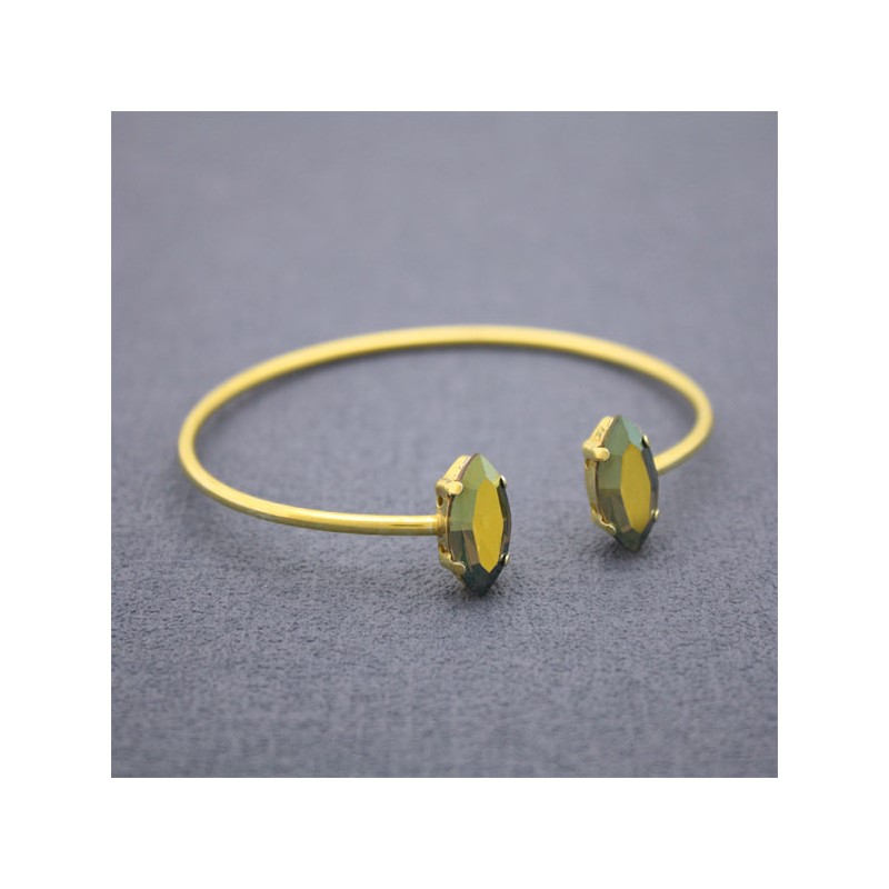 Pulsera en plata de ley 925 bañada en oro de 18k con garras en forma de Navette de 15mm especialmente diseñado para cristales de Swarovski Navette de 15mm.