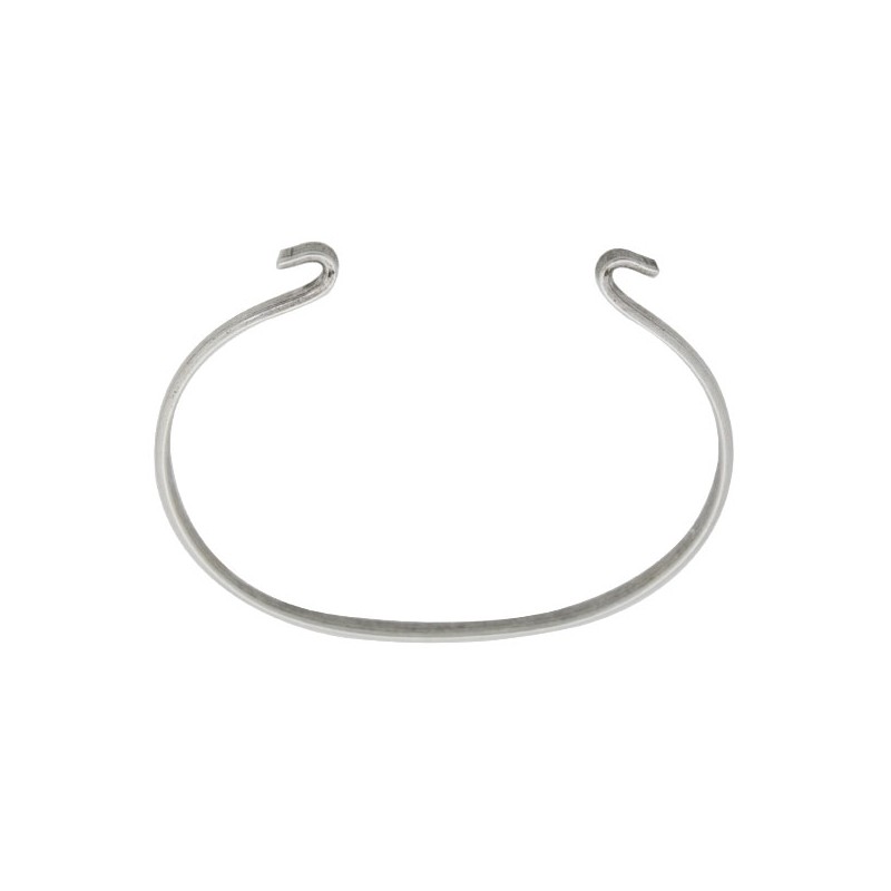 - Pulsera ajustable de zamak con baño en plata. - El tamaño aproximado es de 62 milímetros y tiene unas asas de 3,5 milímetros. - El precio es por unidad.