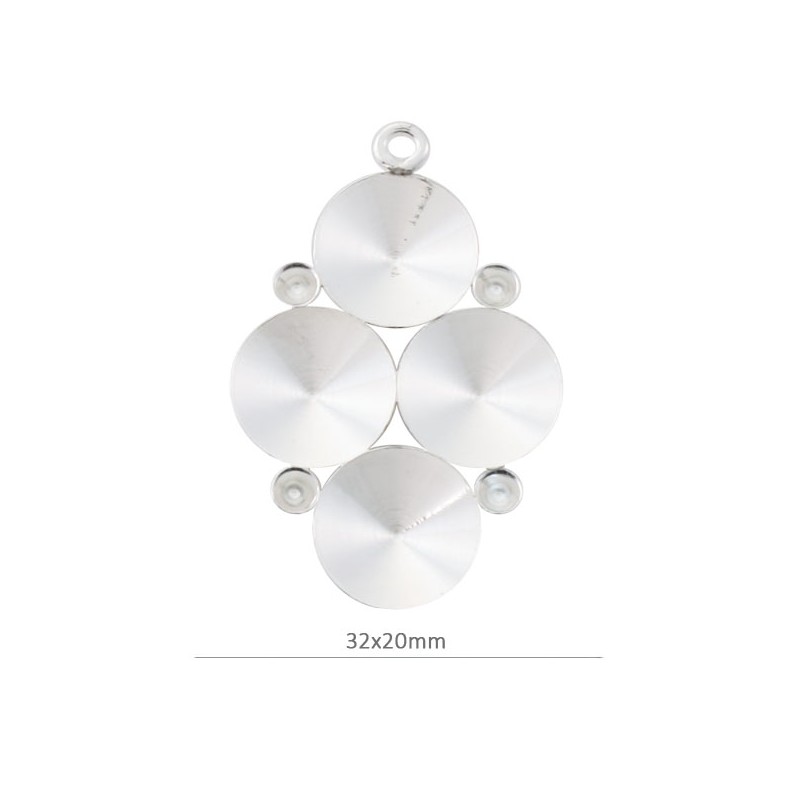 Colgante 4 conos e incrustaciones en plata de ley 925 de 32x20 mm. especialmente diseñado para cristales de Swarovski rívoli y símil.