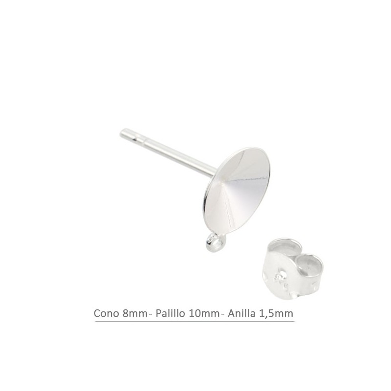 Pendiente cono 8mm con anilla para rívolis Swarovski. Plata de ley