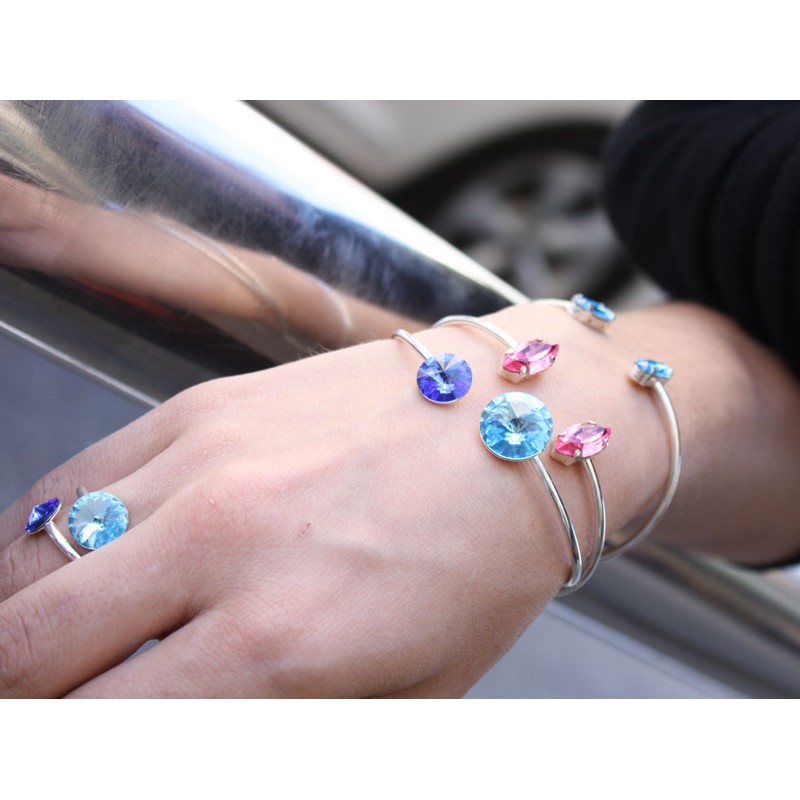 - Pulsera en plata de ley. - Especialmente diseñado para el rívoli de 8 y 12 milímetros de cristal de Swarovski. - El tamaño de la pulsera es de 61 milímetros y el de los conos es de 8mm-12mm. - El precio es por unidad.