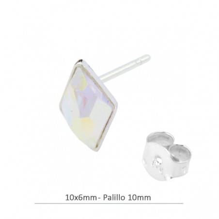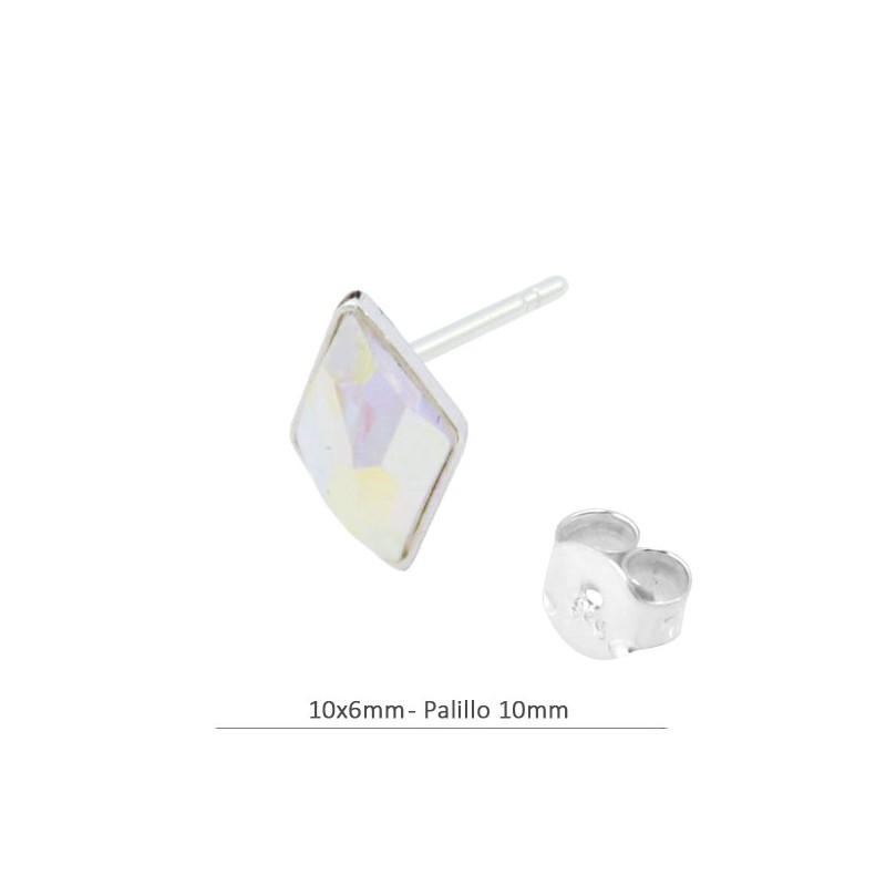 - Pendiente rombo en plata con cristal de Swarovski. - El tamaño es de 10x6 milímetros. - Los cristales y las presiones están incluidos en el precio. - El precio es por bolsa y la bolsa contiene 2 unidades.