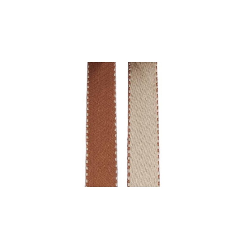 Cinta saten doble cara con pespunte de 10mm. Marron oscuro-claro