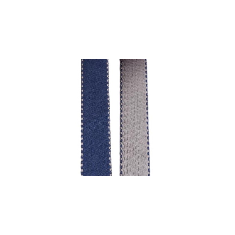 Cinta saten doble cara con pespunte de 10mm.Azul oscuro-gris