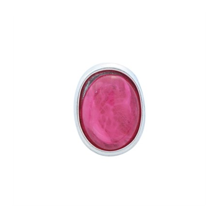 Cierre botón en zamak para cordón de 5mm. La bolsa incluye una resina y un cierre de botón. La resina viene sin pegar al botón. El tamaño es de 28x21 mm. El precio es por bolsa.