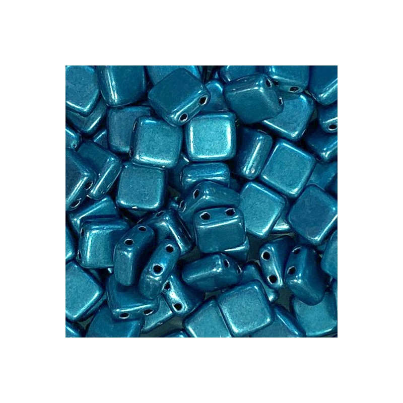 Square beads 2 holes 6mm - Metallic Ibiza Green