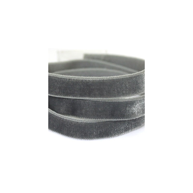 Cinta de terciopelo elástica de alta calidad de 9 mm de ancho en color gris claro.