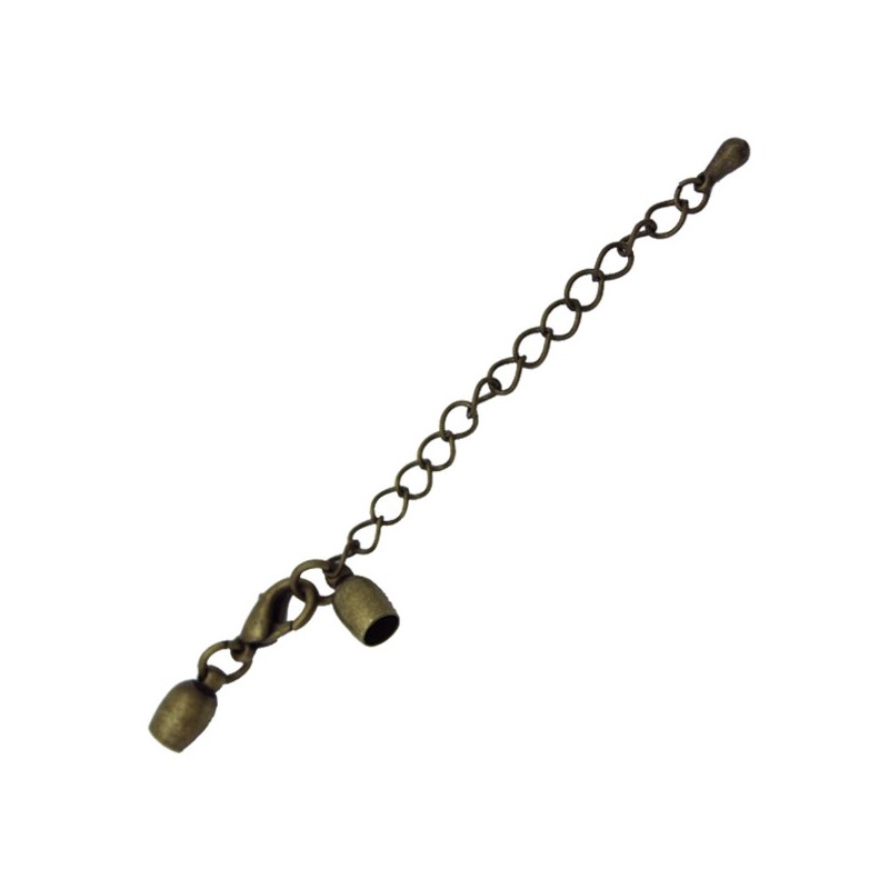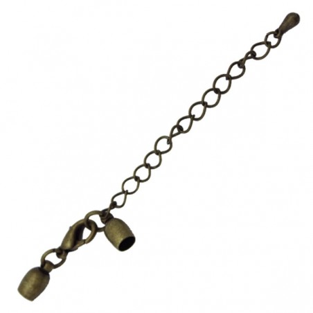 Mosquetón con caireles y alargador de latón en color oro viejo La bolsa contiene 1 unidad y es para cordón de 4 mm.