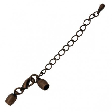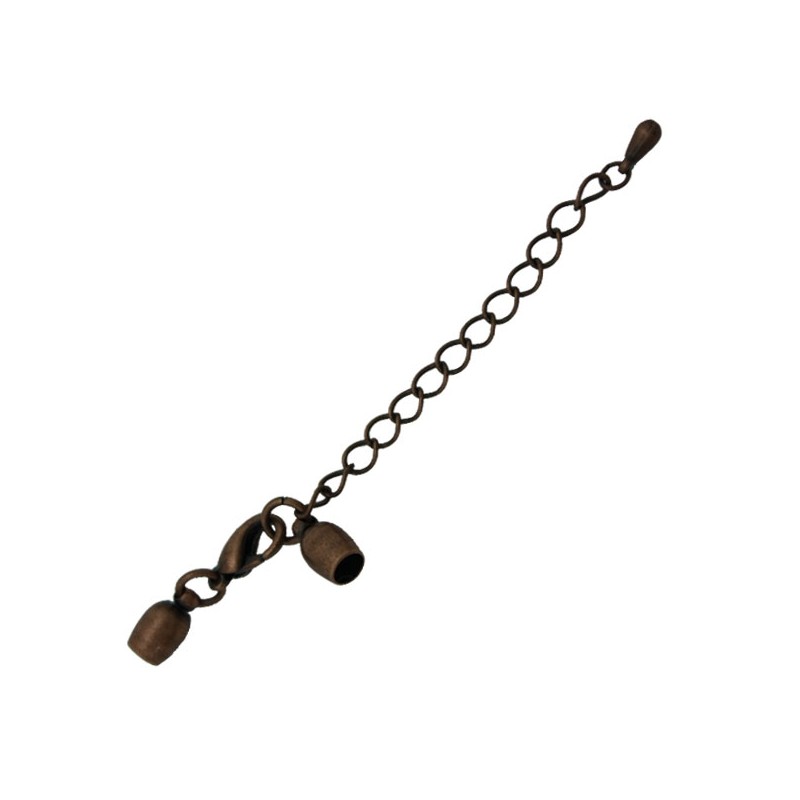 Mosquetón con caireles y alargador de latón en color cobre. La bolsa contiene 1 unidad y es para cordón de 4 mm.
