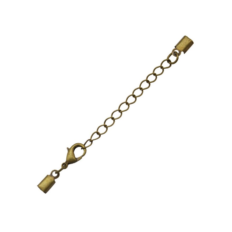 Mosquetón dorado viejo de 12 mm + 2 terminales de 10 x 5 mm para cordón de 4 mm. La bolsa contiene 2 unidades