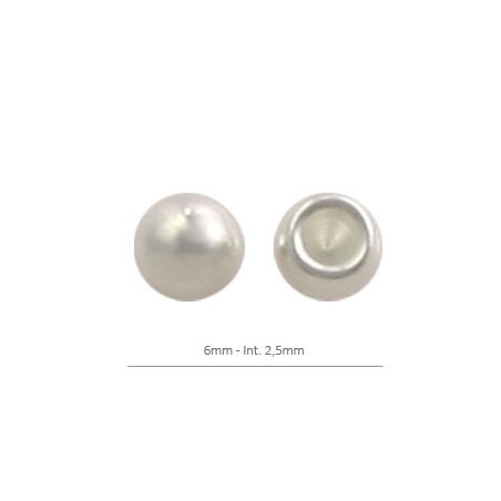 - Bola en zamak con baño de plata. - El tamaño es de 6 milímetros con un agujero de 2,5 milímetros. - El precio es por bolsa y la bolsa contiene 4 unidades.