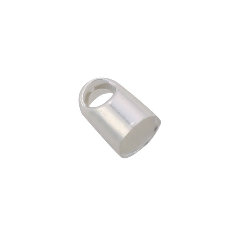 - Terminal de latón con baño de plata. - El tamaño es de 4 milímetros. - El precio es por bolsa y la bolsa incluye 10 unidades.
